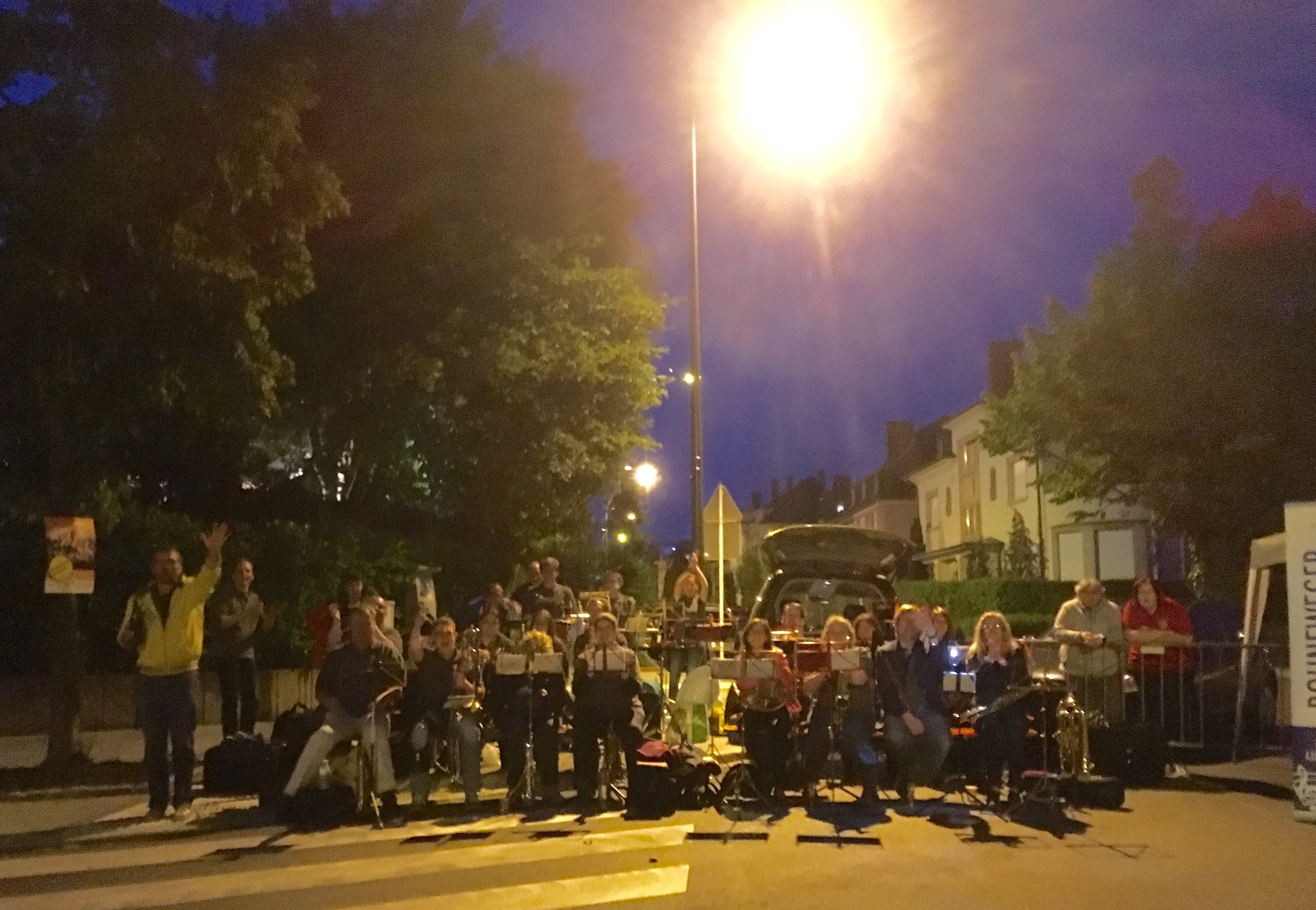 The music groups stayed as long as possible to keep the runners company.